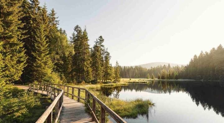 Erstmal die Aussicht auf sich wirken lassen – den frischen Wald, satte Wiesen und zahlreiche Naturweiher, die dazu einladen, alles um sich herum zu vergessen. Dann hinein ins Fichtelgebirge. Abschalten, runterkommen und tief durchatmen... In diesem RAUM im Fichtelgebirge wartet ein ungezwungener Urlaub auf alle, die ein Weilchen dem Alltag entfliehen möchten.