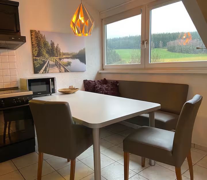 Fantastische Sonnenuntergänge und laue Abende auf dem Südbalkon mit einer wunderschönen Aussicht über die Weiten des Fichtelgebirges erwarten dich hier. Apartment Anni ist perfekt für Paare und (Hunde-)Freunde. Der knisternde Kachelofen lädt ein für kuschelige Stunden und Erholung pur.