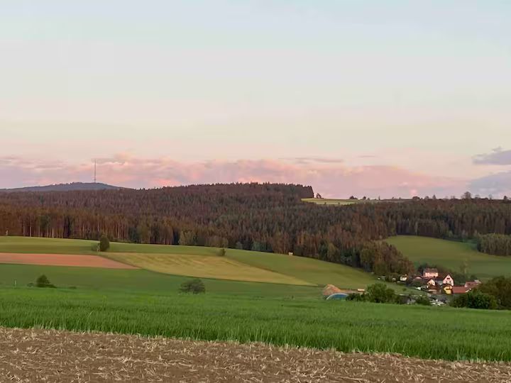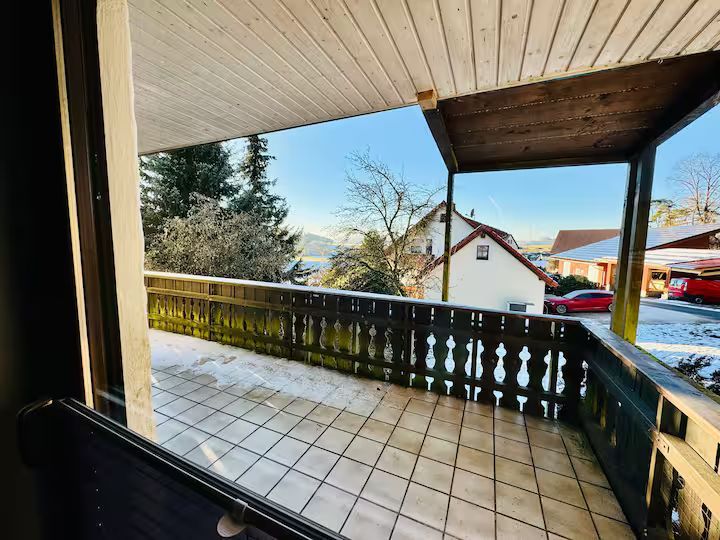 - Überdachter großer Süd- und Westbalkon mit weitem schönen Blick über das Fichtelgebirge inkl. integrierten Steingrill