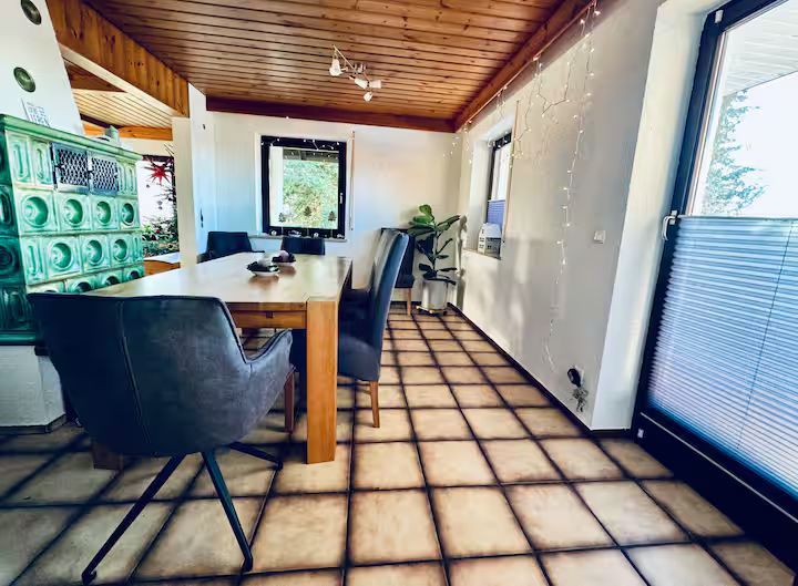 - Großzügige gemütliche Sitzecke mit ausziehbaren Esstisch am Ofen für bis zu 12 Personen